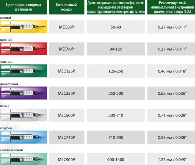 - розмірна сітка налічує 7 розмірів, для хіміоемболізації;